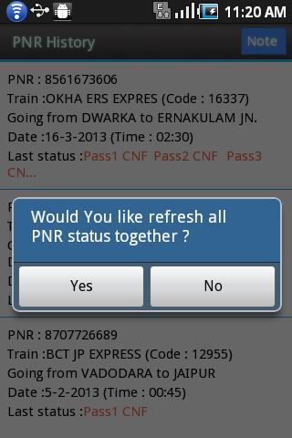 ★ PNR History [Refresh all pnr status (Pro Only)]